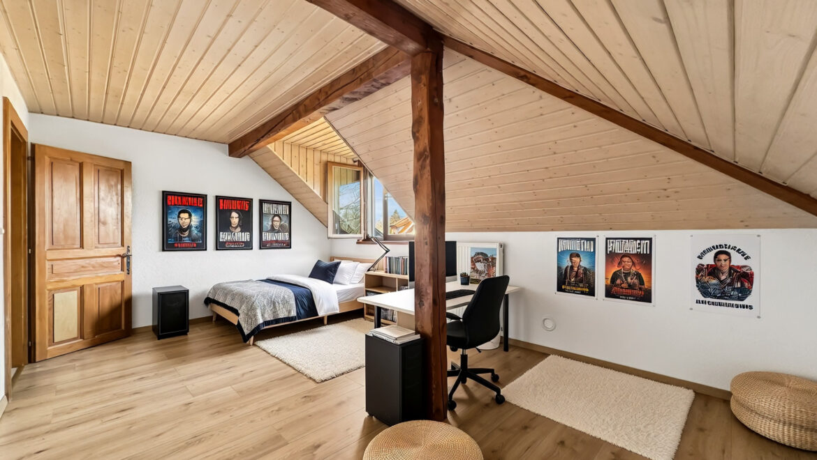Il bénéficie d’un grand local (n°5) d’environ 14 m2 selon le registre foncier ainsi qu’un grenier accessible par une trape directement depuis l’appartement.