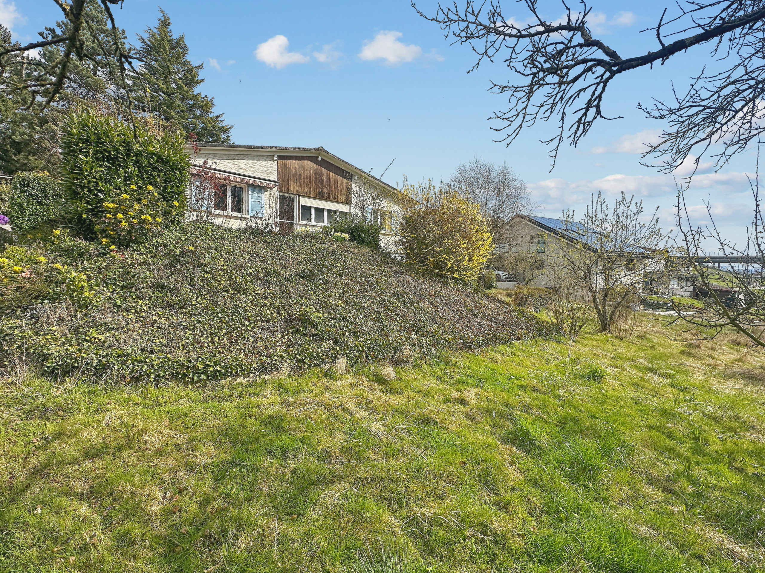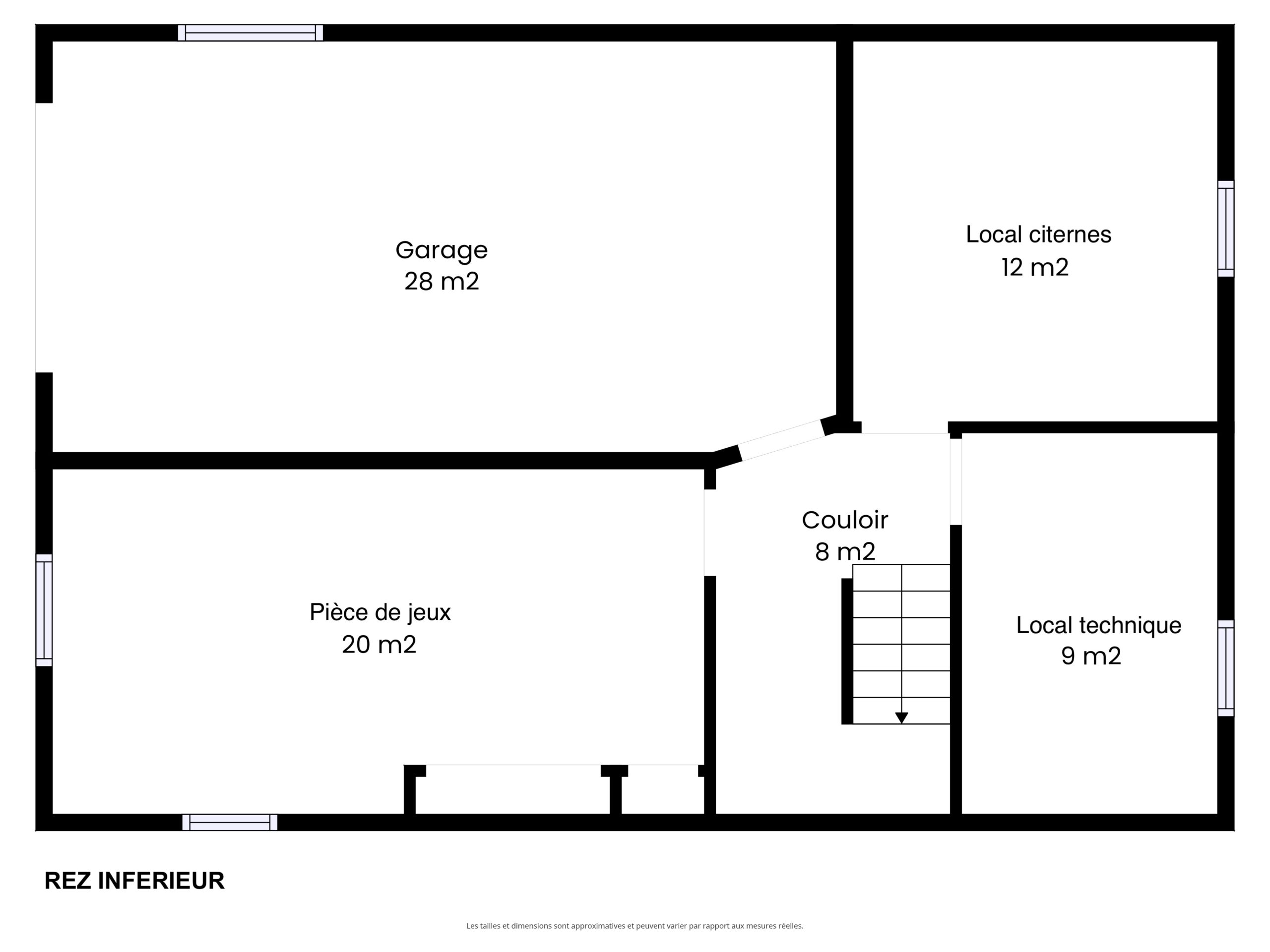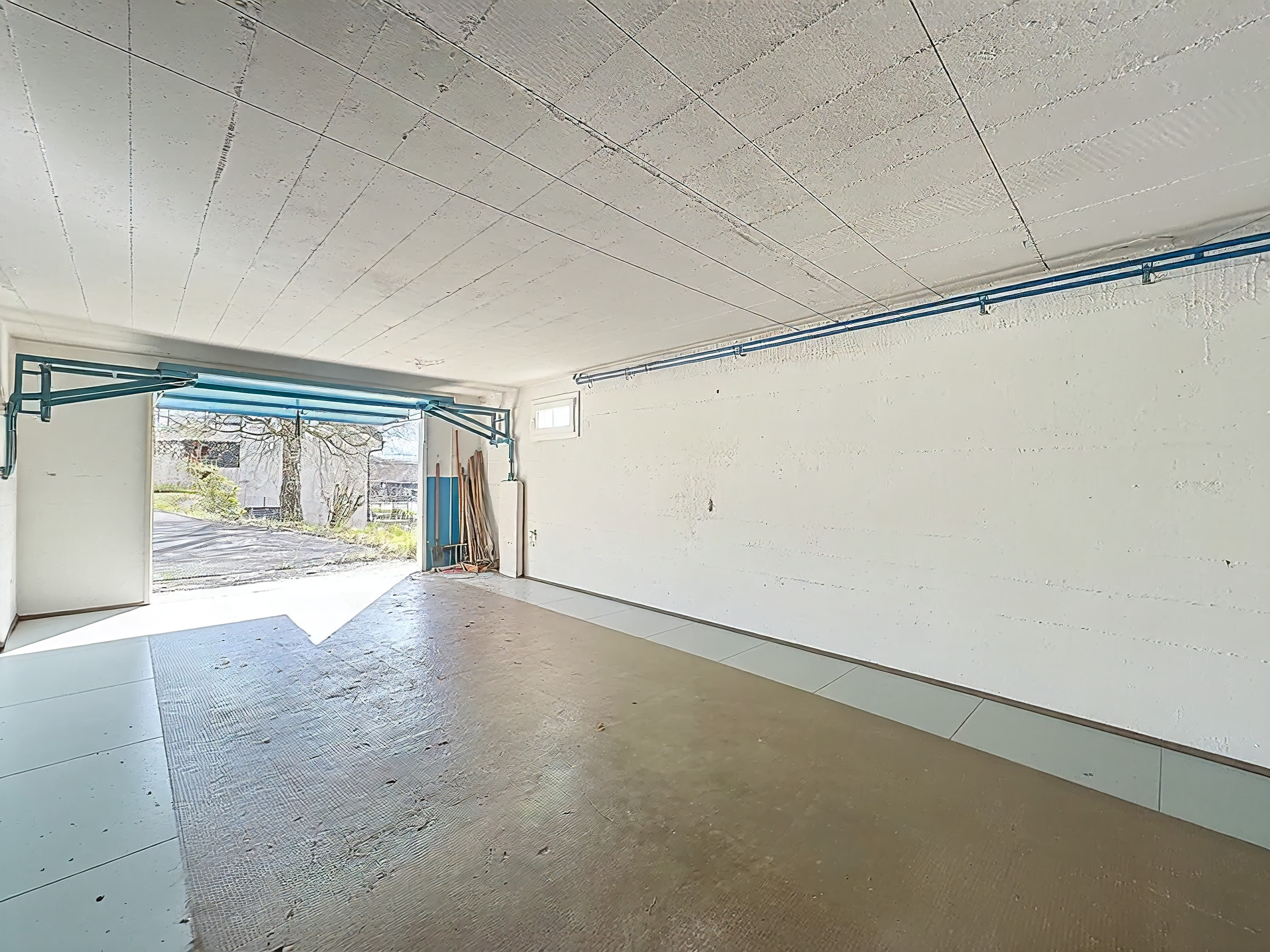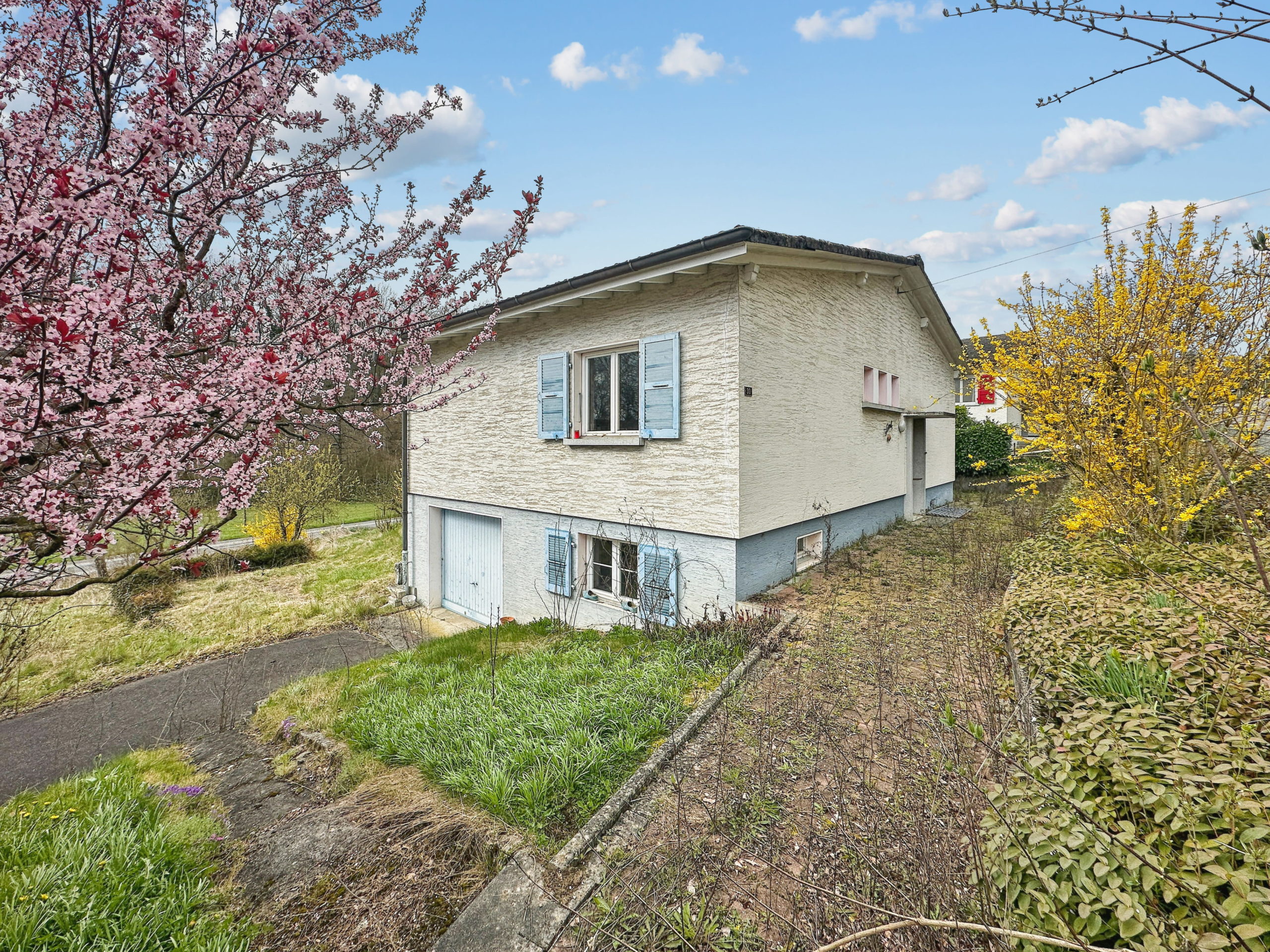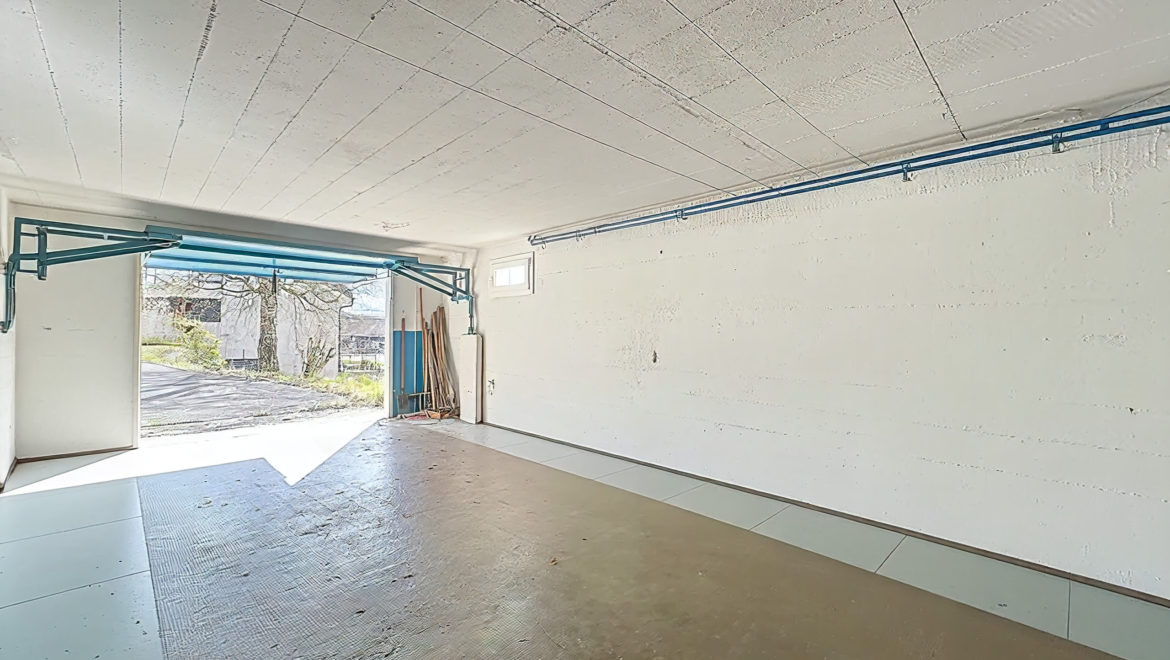 Il s’agit d’une villa typique des années 60, avec un rez supérieur et une pièce de jeux au rez inférieur accessible par le garage.
