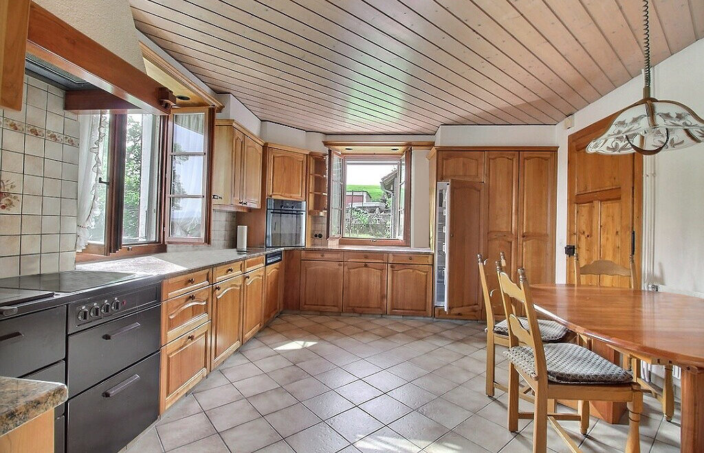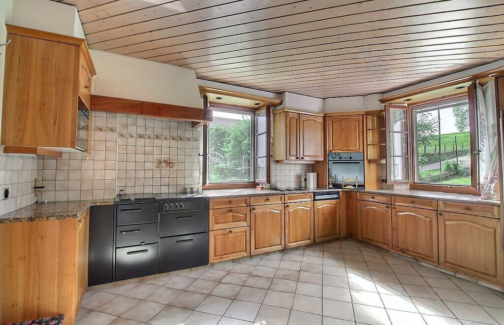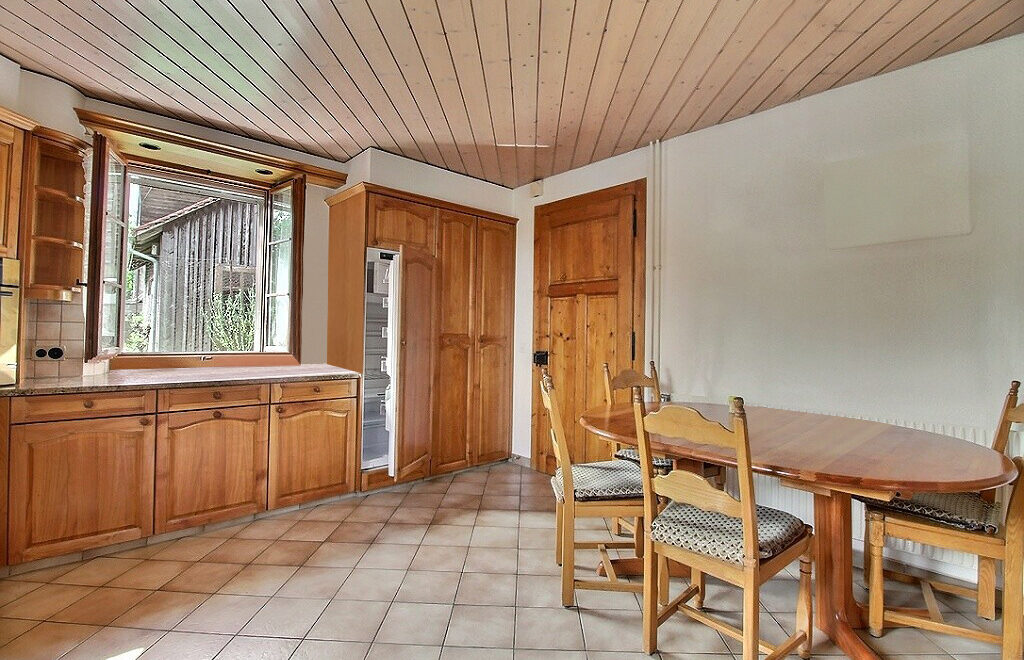 – Cuisine équipée, 1991 avec Tiba à bois combinée, plan de travail en granit, attenante au