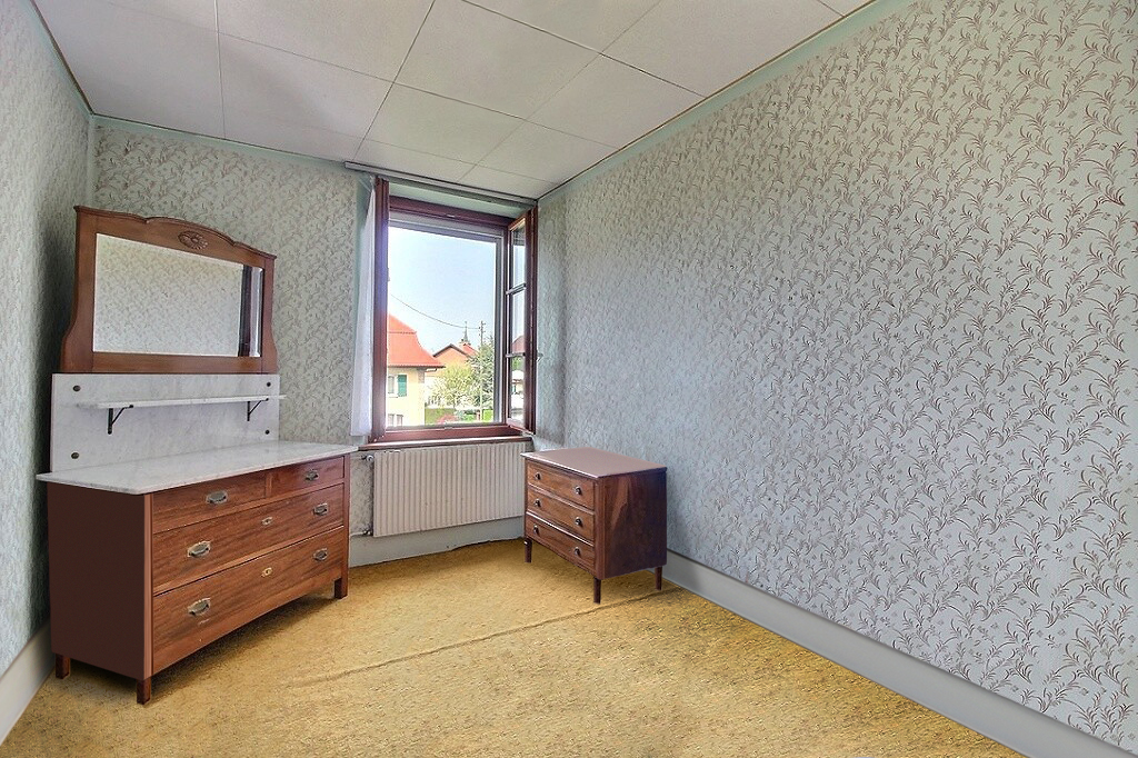Entrée par perron au 1er étage côté route ou rez depuis l’arrière de la maison :
