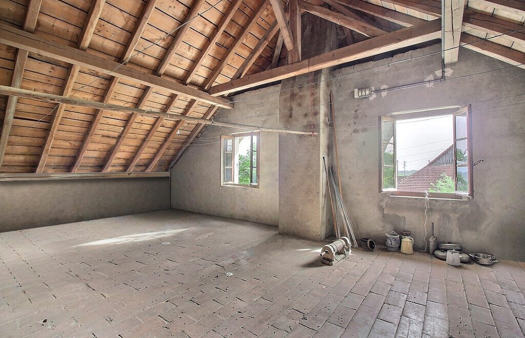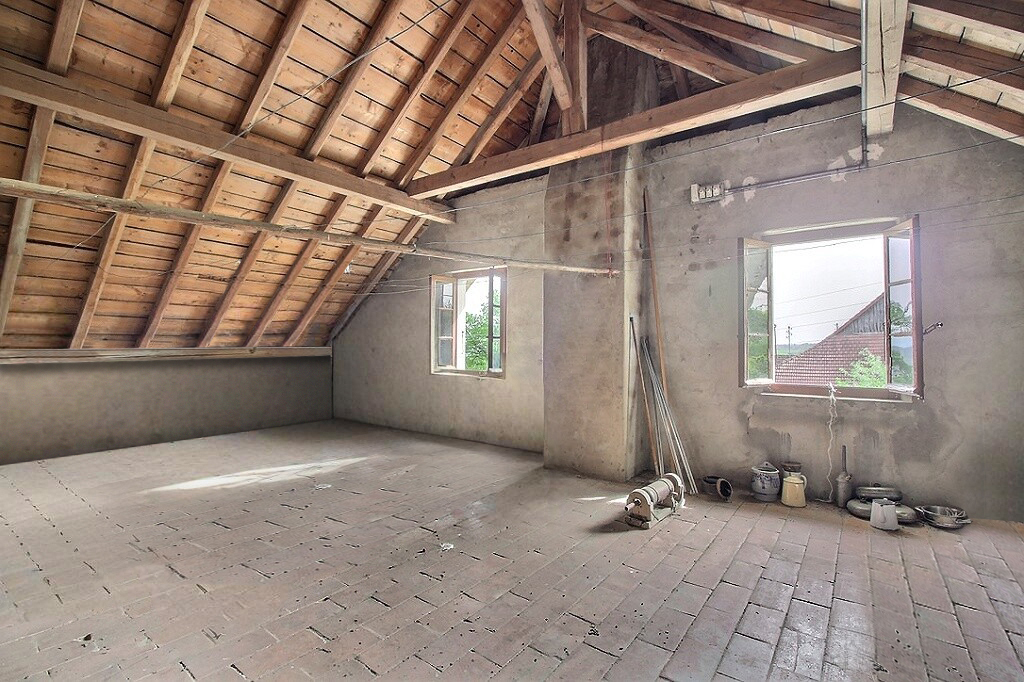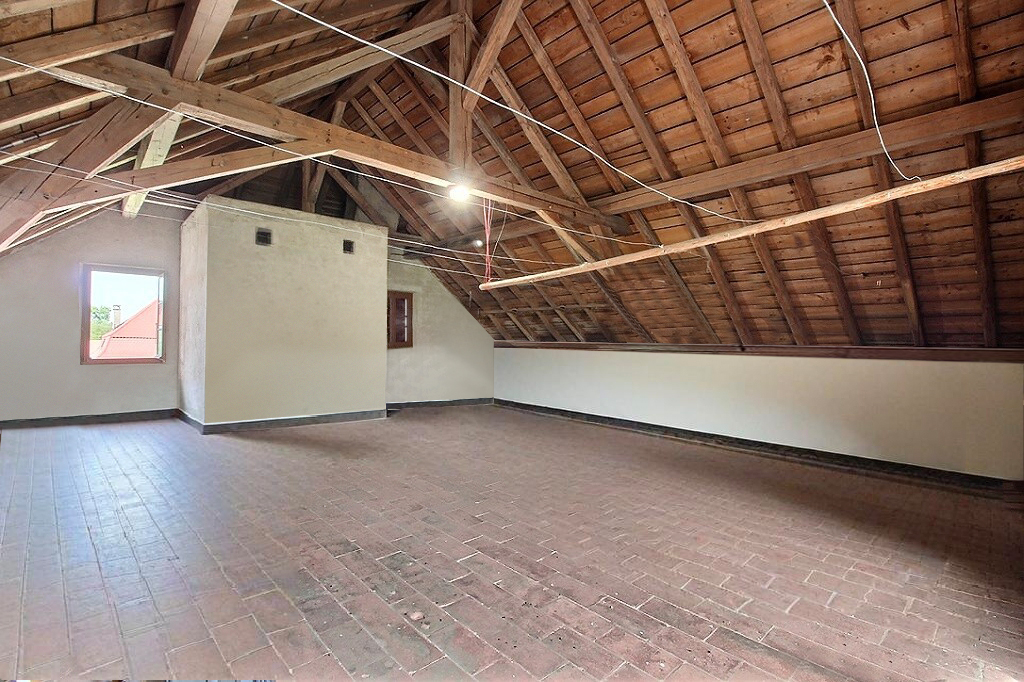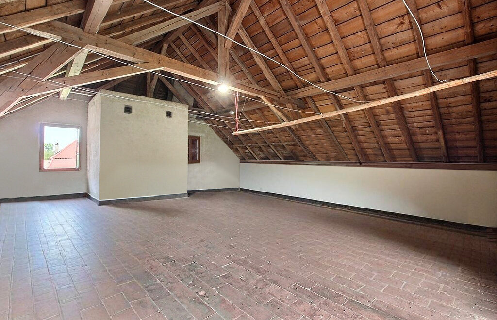 Grand grenier avec une toiture comprenant une sous-couverture typique en planche., Fumoir.