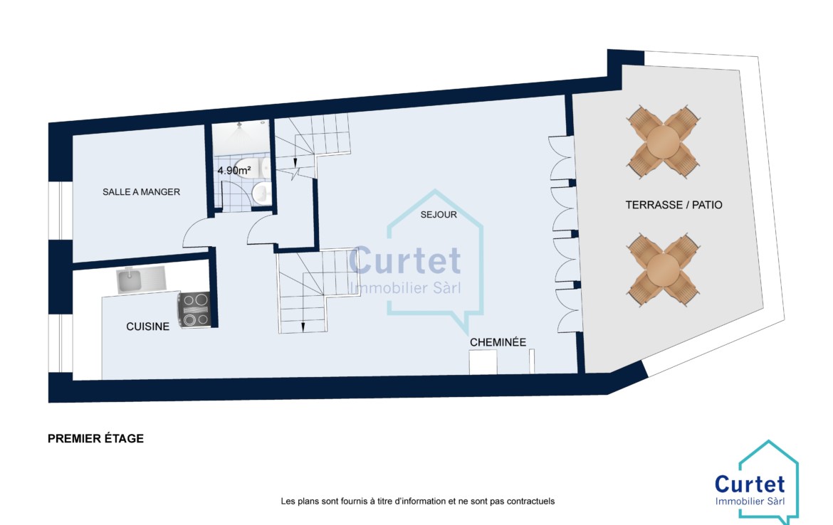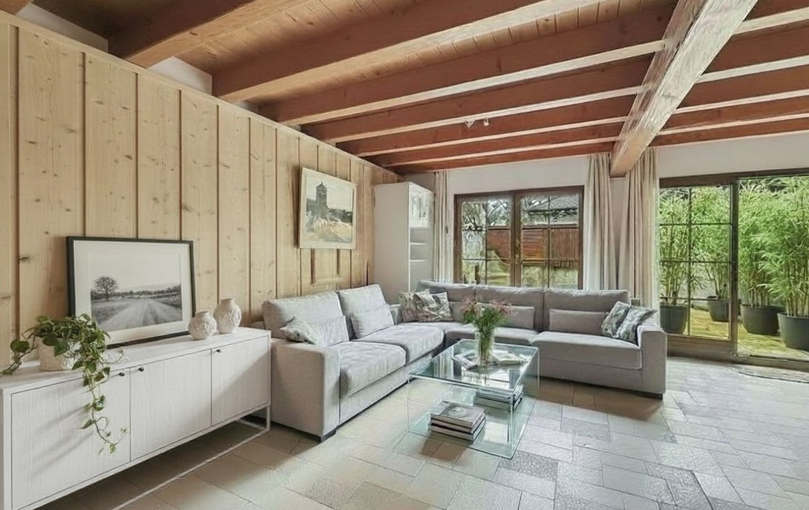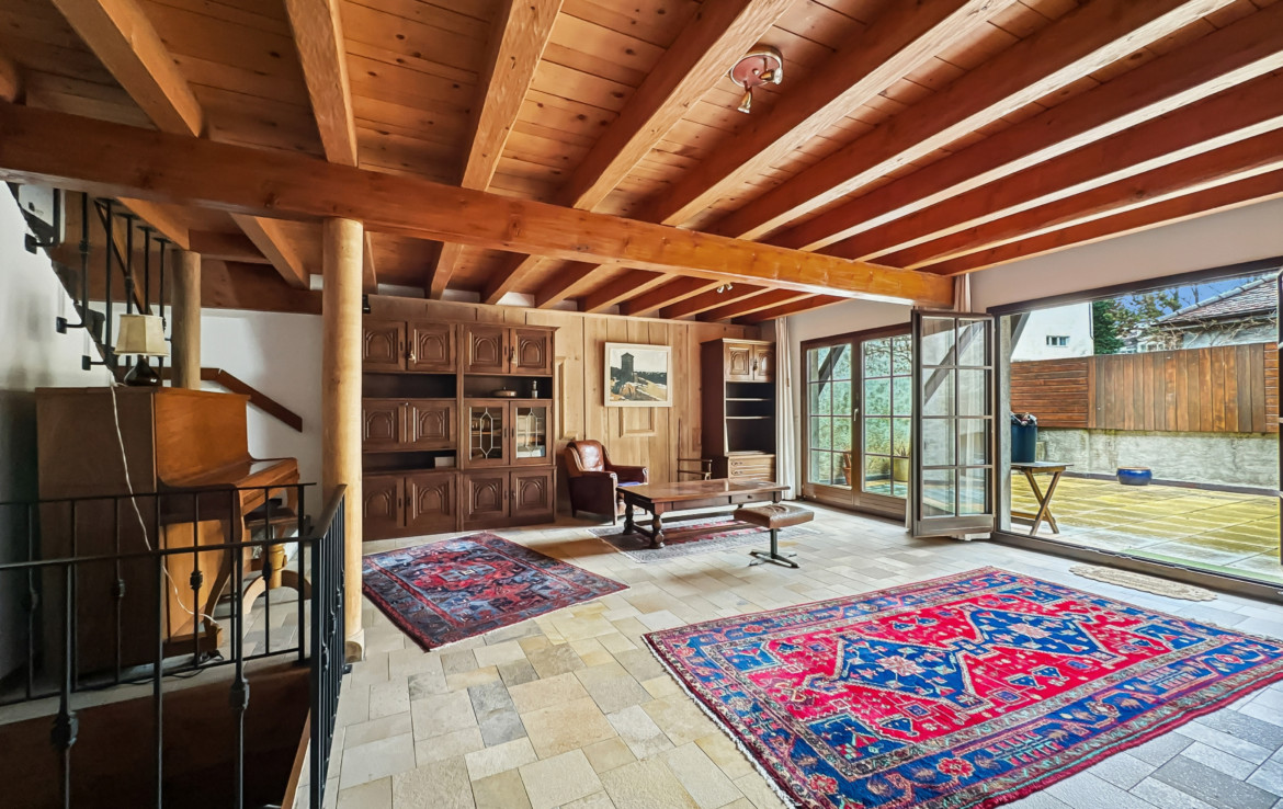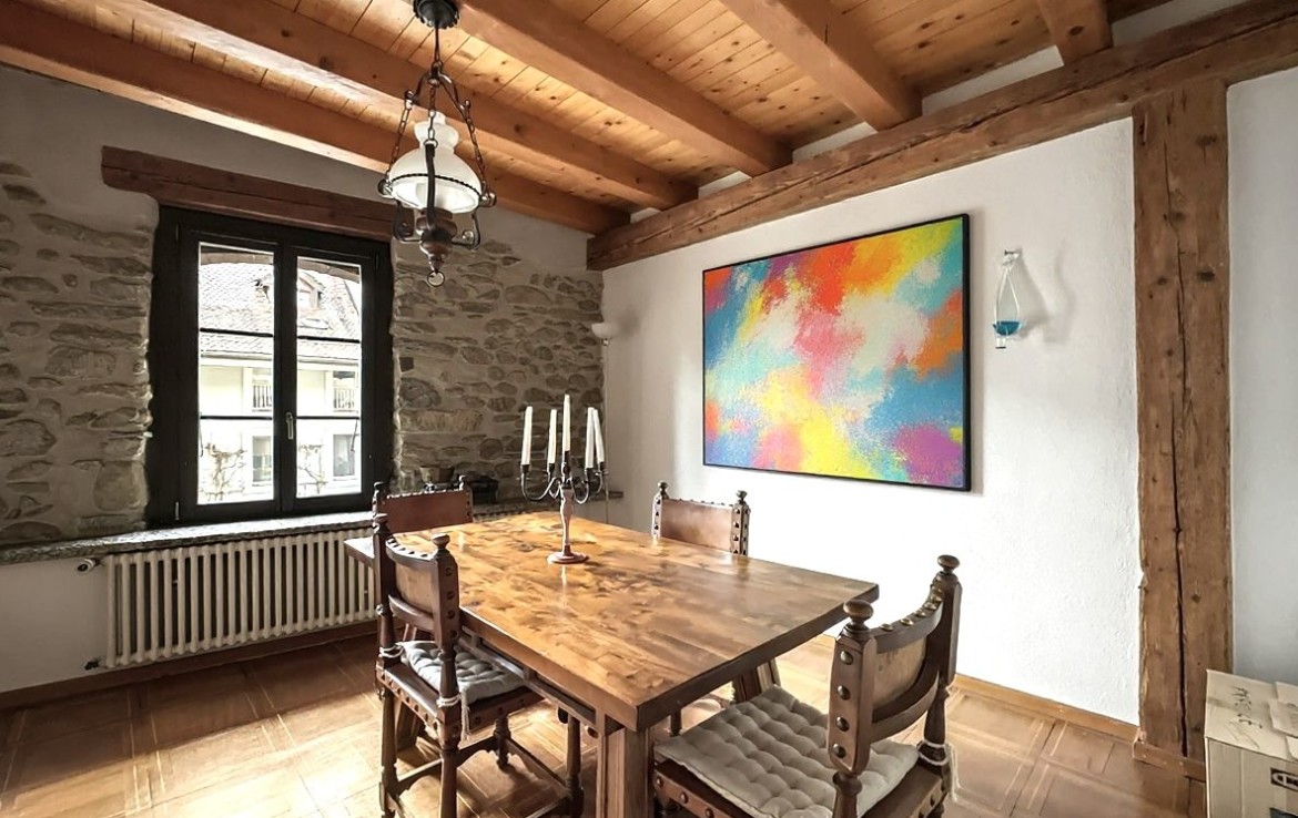 Il s’agit d’un triplex, rénové en 1987, libre rapidement. Le lot est mitoyen avec la cure et s’intègre harmonieusement dans un très bel ensemble villageois. A l’arrière une belle terrasse-patio accentue le charme discret du bien.
